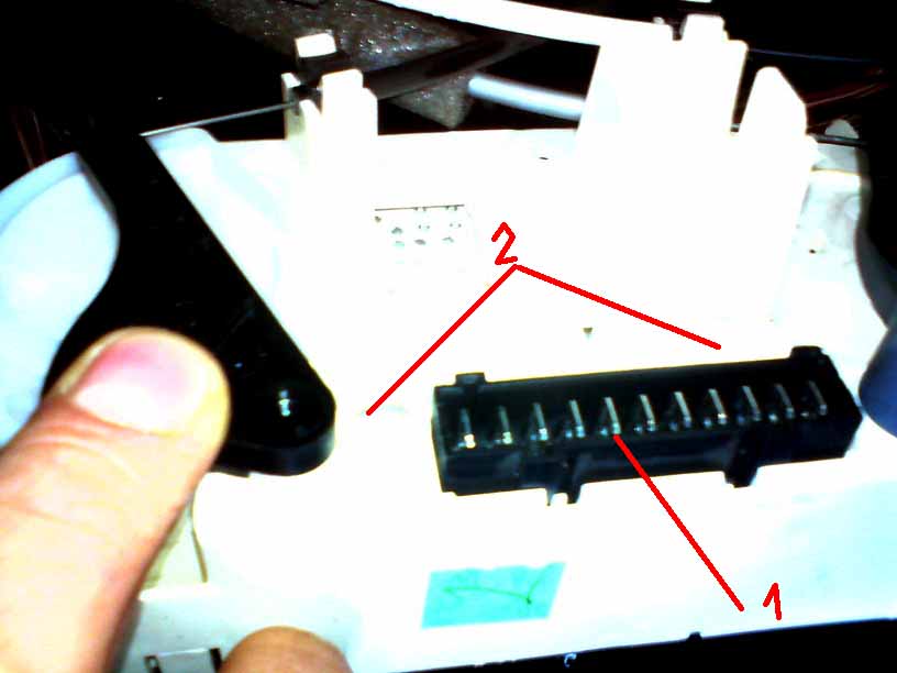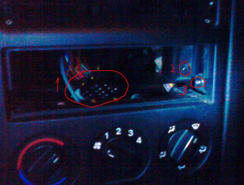 вынимаем салазки магнитолы, освободив разъем и анненну (цифирь 1)
