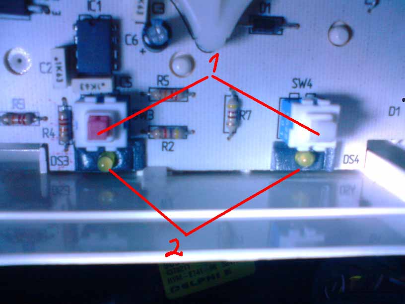 поворачиваем регуляторы температры и направления так чтобы свободить доступ к лампочкам(цифирь 3 н картине второй)